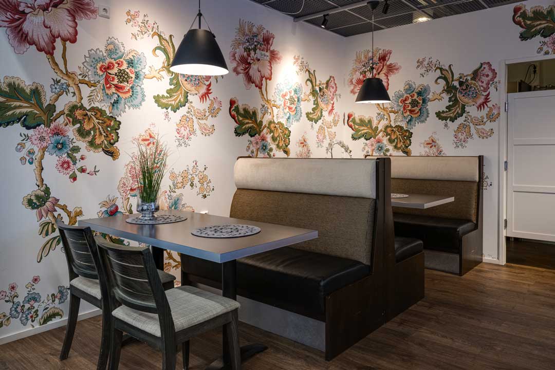Kahvilassa tarjolla päivittäin oman kondiittorin makeita ja suolaisia herkkuja, maittavia ruoka-annoksia (myös kotiin noudettuna) ja erikoiskahveja.