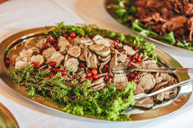 Our dining room at Kirkkotie 23, Kuusamo town center, seats as many as 150 customers. On weekdays we serve a home-cooked buffet lunch with three main course options. Our catering service will also deliver meals for the elderly and lunches to workplaces. Cabinets provide a great setting for meetings and events of different sizes.